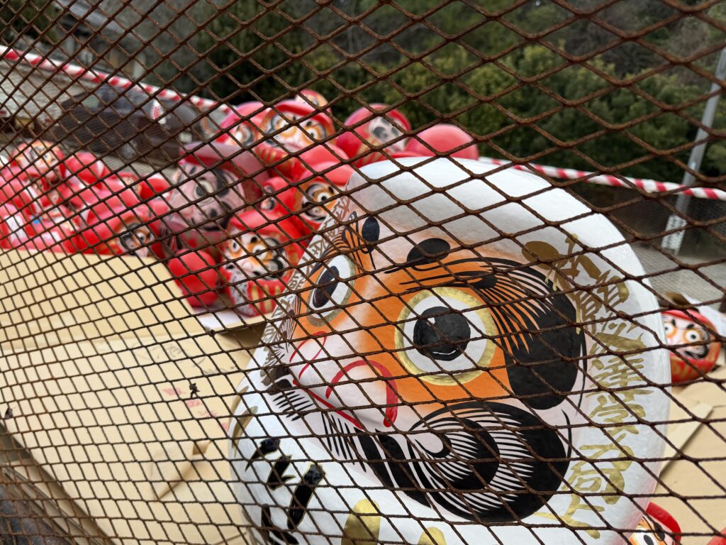 福だるまに一斉に火をかける「お焚き上げ」が見ものらしいが、タイミングが合わず観ることができなくて残念。多くの祈願者の願望を叶え、ここに来ただるまさんたち。